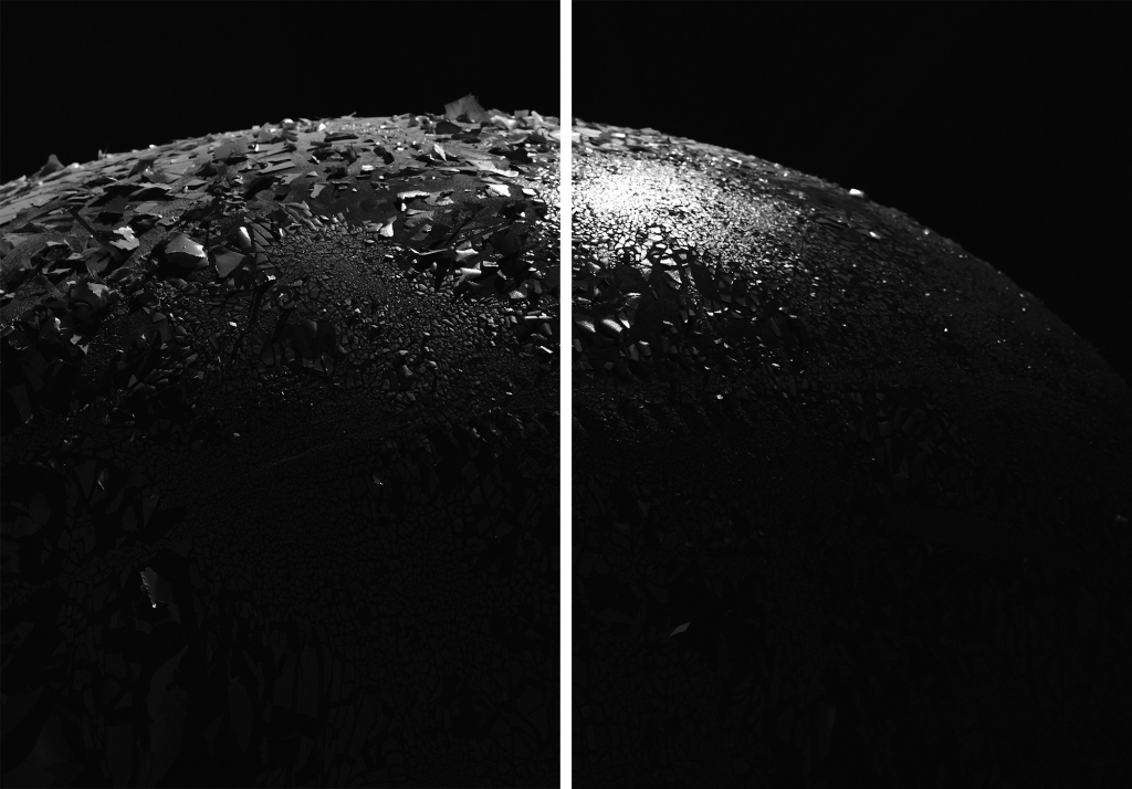 表層がひび割れたバルーンの写真額装作品とそれらを収めた本の他、この度新作発表となりました音楽家・平井真美子さんと古楽器や廃材を通じて表現されたレコード盤「CALL|SIGNAL」を展示します。